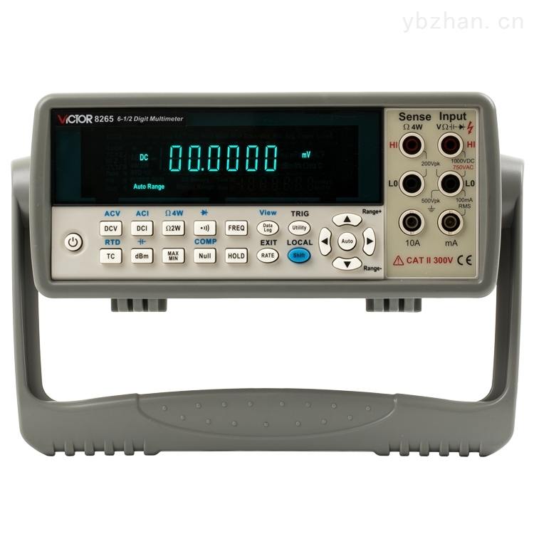 VICTOR 8265智能台式真有效值万用表有4-1/2位、5-1/2位、6-1/2位显示分辨率,最高显示读数值±88888888字,基本直流电压准确度高达0.0035%。