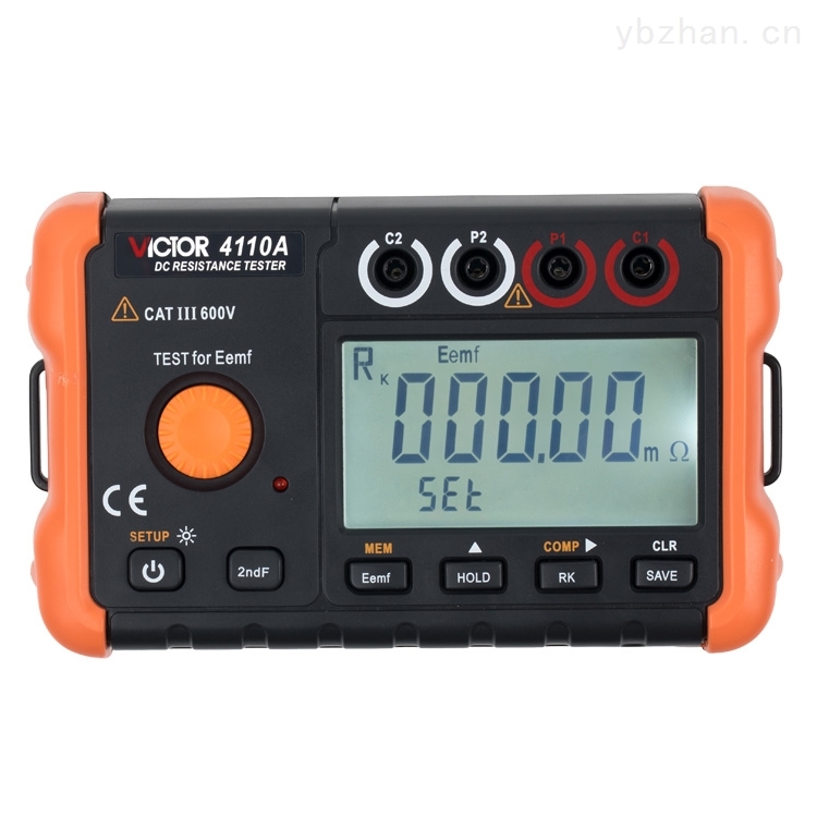 VICTOR 4110A 直流低电阻测试仪采用直流激励4极法测量,适用于测量电缆的导线电阻,开关、接插件、继电器的接触电阻,线圈、电动机、变压器绕组的电阻以及金属铆接电阻,金属构件之间联结电阻测试,低值电阻测试,地网地极间连接导体的电阻测试,接触电阻测试。